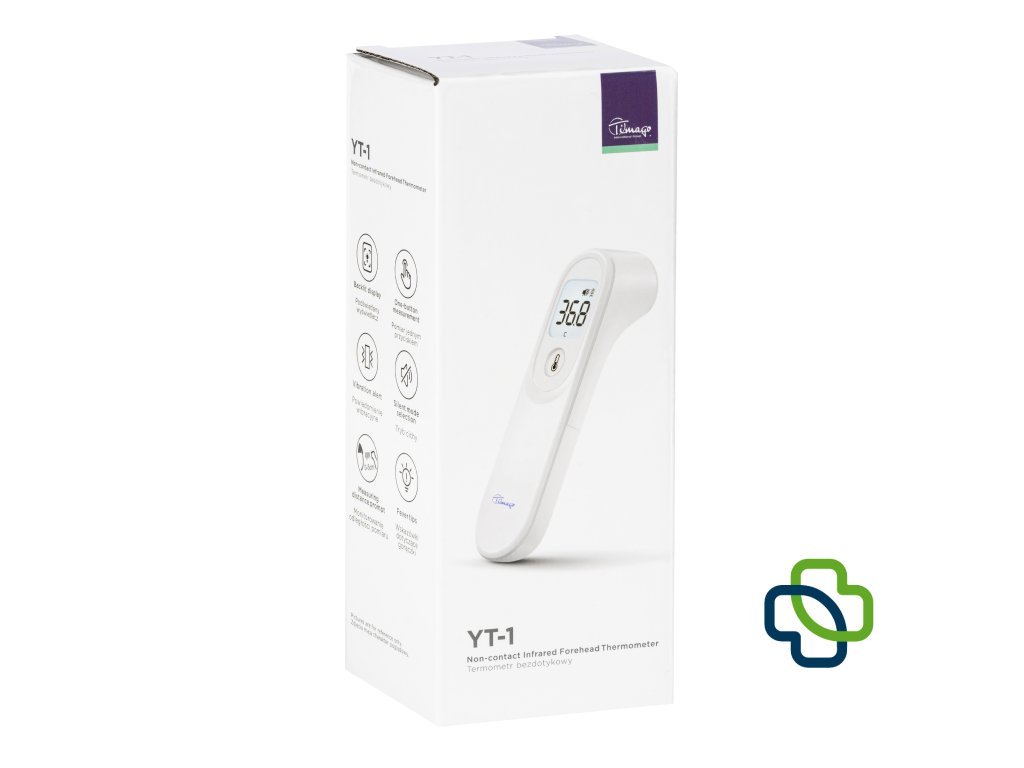 Bezkontaktní infračervený teploměr Yuwell YT-1 pro děti od 4 týdnů i dospělé. Rychlé měření za 1 sekundu, alarm při horečce (zvuk, vibrace, barevný displej). Přehledný LCD, přesnost ±0,3 °C, automatické vypnutí.