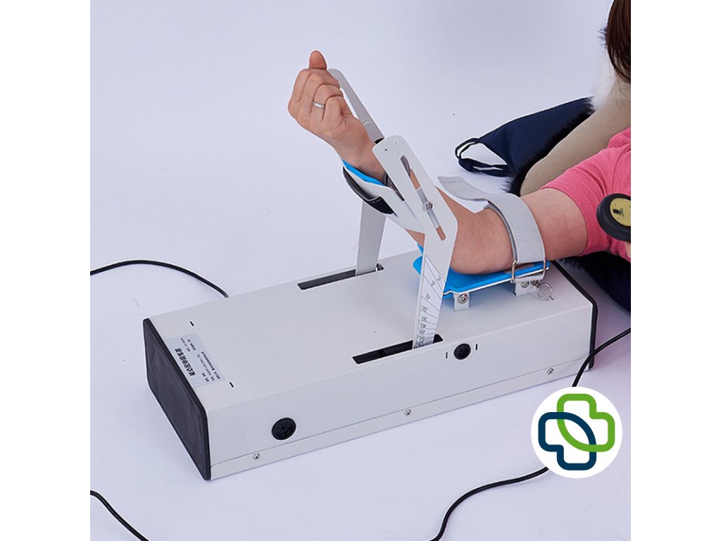 Motodlaha pro loketní kloub slouží k pasivnímu procvičování pohybu po úrazech, operacích nebo při rehabilitaci. Umožňuje plynulé a bezpečné ohýbání a natahování lokte bez námahy pacienta.