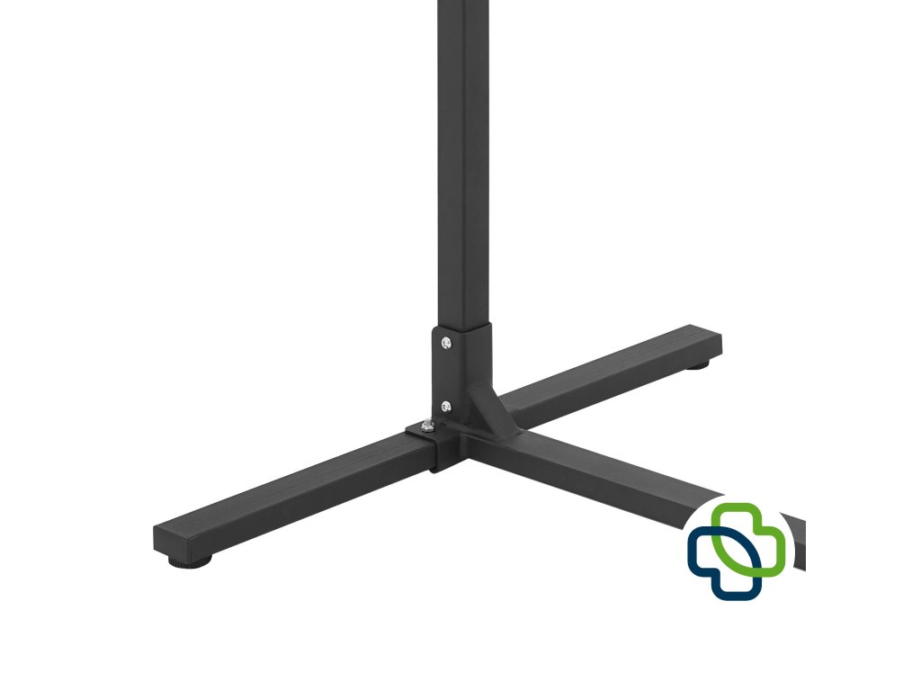 Stojan nabízí 9 úrovní výškového nastavení (130–175 cm), takže jej lze snadno přizpůsobit různým výškám i rehabilitačním úkonům.