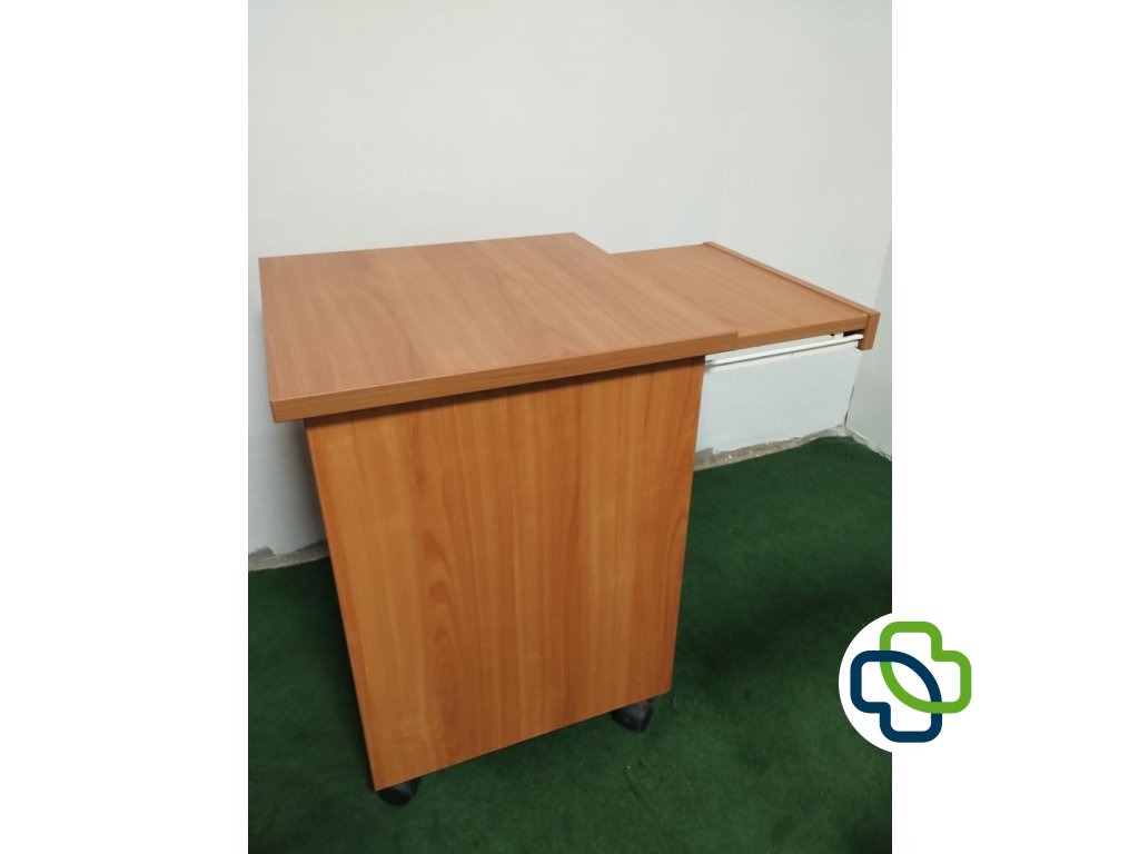 Repasovaný noční stolek s integrovanou výsuvnou jídelní deskou je praktickým řešením pro pohodlné stolování nebo odkládání osobních věcí přímo u postele. Je vhodný do domácí péče, nemocnic, rehabilitačních zařízení i domovů seniorů.