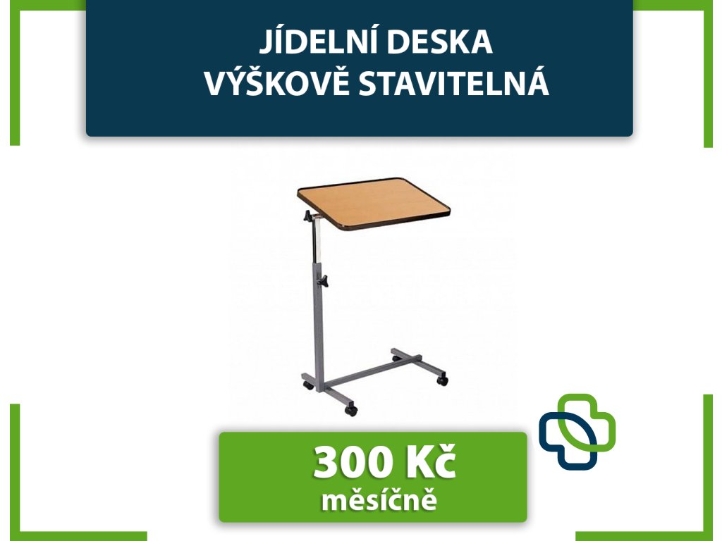 Tento dřevěný jídelní stolek je ideální především pro konzumování jídla a pro ruční práci na polohovatelných postelích. Je skvělým pomocníkem nejen pro seniory, ale pro všechny osoby, které ocení pohodlí a praktičnost. Jídelní stolek je vybaven čtyřmi pojezdovými kolečky s brzdou. Tvarovaná konstrukce, která lze výškově nastavit a zasunout přímo pod rám postele. Jídelní deska je opatřena vyvýšeným okrajem a je možné desku stolu úhlově naklánět dle potřeby.