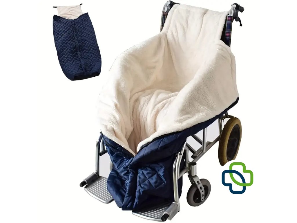 Zateplená deka pro invalidní vozík, přizpůsobená jak vnitřnímu, tak venkovnímu použití. Univerzální design chrání dolní část těla před chladem a větrem během zimy.